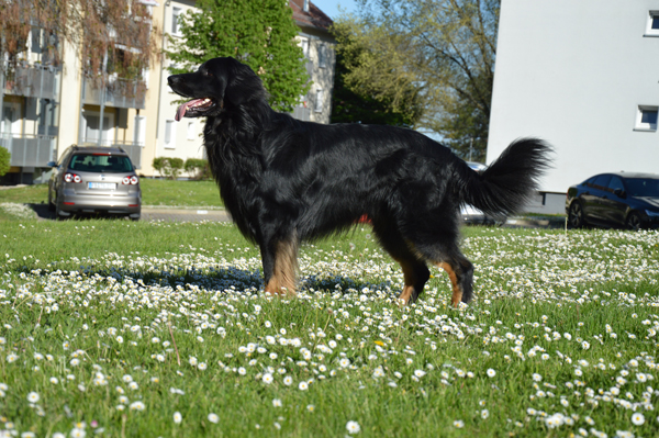 Wo auch immer Thorin auftaucht, hinterlässt er Eindruck. Ob bei Rasseliebhabern oder Menschen, die den Hovawart zum ersten Mal erleben – Bewunderung ist ihm sicher. Wer ihn näher kennenlernt, merkt schnell: Seine äußere Erscheinung ist nur